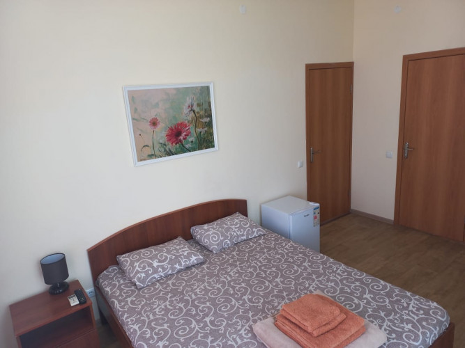В номерах: одна двуспальная или две односпальные кровати, санузел (душевая кабина в каждом номере, умывальник, туалет), холодильник (мини-бар), ТВ (кабельное), чайник, сплит-система кондиционер, номера с патио и без, вид на море.