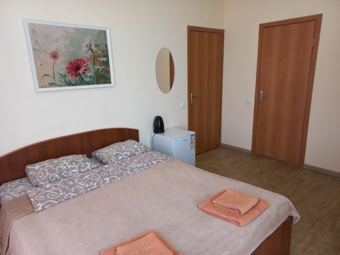 Все номера с видом на море. В номере есть телевизор, кондиционер, холодильник, кружки, чайник, сейф, постельное белье, полотенца, плед , подушки антиаллергенные, удобный матрас. В каждом номере есть собственная ванная комната. Гостям предоставляются бесплатные туалетно-косметические принадлежности. На первом этаже есть микроволновка, утюг с гладильной доской, фен по требованию у администратора. Замена постельного белья раз в три дня согласно стандартам.